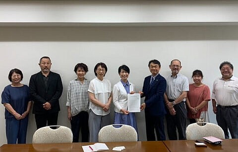 同日、県への提出の後には、各会派の県議団にも同要望書について陳情訪問をしてきました。不在の議員には、秘書対応いただき、簡略説明で要望書提出となりました。自民党 中屋敷慎一 議員(秘書)、無所属県民の会 井上航議員・岡本ゆり子議員・松坂喜浩議員、共産党 伊藤はつみ議員・城下のり子議員の3会派、5名の県会議員には対談にて、要望事項の説明、主には新たな課題として一歳児の加算要件について、子どもの処遇の低下につながる問題であることや現状の課題を伝えてきました。